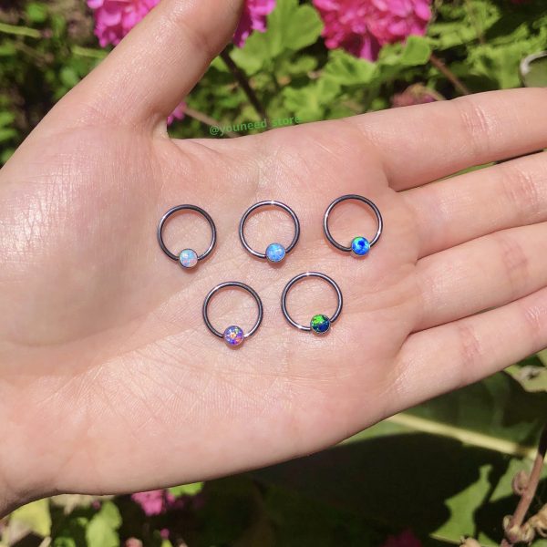 Argolla Clicker Ópalo •Material: Acero Quirúrgico •Diámetro: 8mm •Grosor: 1.2mm •Colores: Blanco, morado y azul. •Sirve para: Septum, Daith, Hélix y oreja.